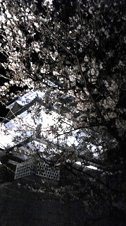 夜桜と城。